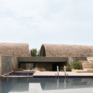 Design description - The process began with a careful study of site, orientation, and climate, which shaped the farmhouse into two linear blocks — one private and one social — linked through passages, wedge-shaped courtyards, and crafted free-standing walls. Importantly, all materials were sourced within 25 km, reinforcing the project’s rootedness in its context. Rubble masonry was not only chosen for its availability but also engineered to create vaulted, high-ceilinged volumes that reduce heat gain and maintain cooler interiors in Jaipur’s harsh climate. Courtyards became the key spatial device, designed in a hierarchy of scales — from intimate courts for pause and morning tea, to larger open greens for gatherings and farming. This sequential movement through courts and passages makes landscape an integral part of the architecture, blurring boundaries between built and unbuilt, and creating a farmhouse both responsive and experiential.